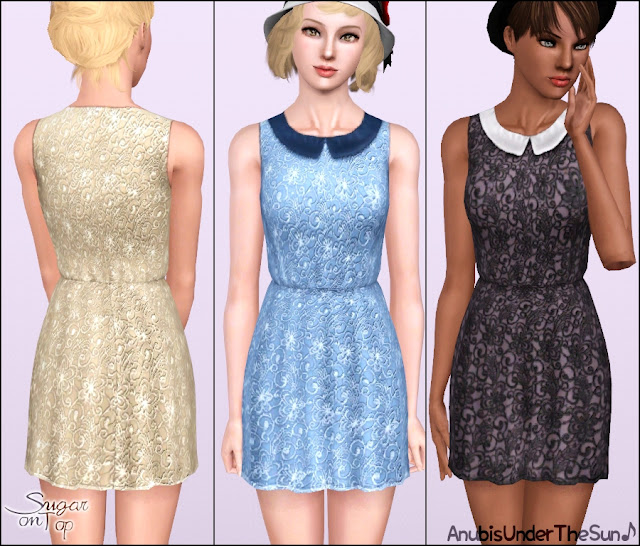 Ok, for most people who download CC they will have see Anubis Under The Sun's work before! It's amazing! She is probably one of my favorite CC creators! This lace dress is available for Adult and Elder women.